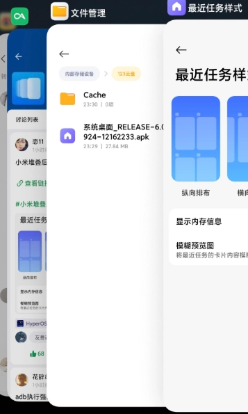 小米堆叠桌面模块包含小米堆叠桌面与堆叠任务后台,是澎湃OS3系统新增的桌面后台样式。该功能可将后台任务转化为层叠卡片形式,支持横向滑动切换任务、向上滑动关闭任务,还能对堆叠密度进行自定义设置。需要注意的是,此模块仅适配澎湃OS3及更高版本系统,低于该版本的系统可能无法正常支持;目前需通过系统自带的文件管理工具完成安装,感兴趣的用户可以尝试体验。