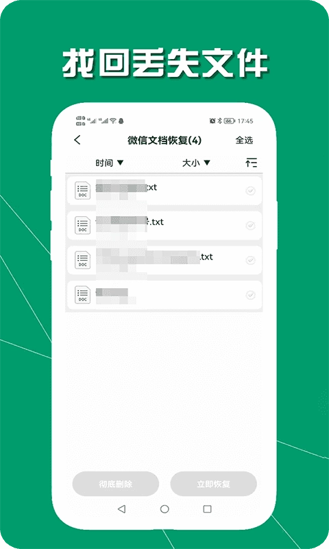 1.以列表形式展示已删除的图片、视频、音频等文件,并支持全选功能;