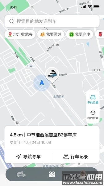 可以实时查看车辆的位置和行驶轨迹,还能推荐周边的露营地、充电站及加油站,并且支持一键把目的地发送至车机。