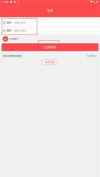 3、进入登录页面后,在【请输入账号】和【请输入密码】的输入框中填写对应信息,勾选【记住账户】选项,随后点击【立即登录】按钮即可完成登录操作。