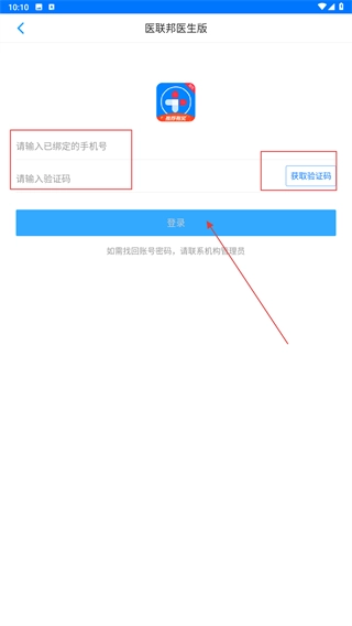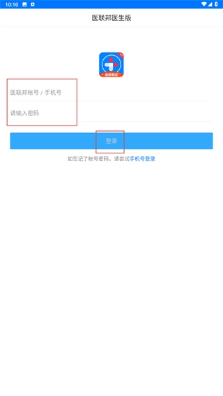 1、打开【医联邦医生版】的登录界面,输入【医联邦帐号或手机号】以及【密码】后,点击【登录】按钮,即可进入系统。