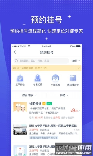 微医挂号网的手机端拥有正规医疗资质,汇聚了国内数千家知名医院的资源,为用户带来便捷的线上医疗服务。该平台可提供预约挂号、在线购药、专家问诊等服务,还能依据用户的个性化需求制定专属健康管理方案,让就医流程更高效、更安心。