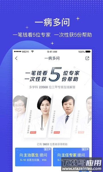 5. 一病多问服务:单次提问即可获取5位及以上全国优质三甲医院专家的专业见解;通过多位专家联合评估病情与治疗方案,有效减少误诊可能性,提升患者治疗信心。