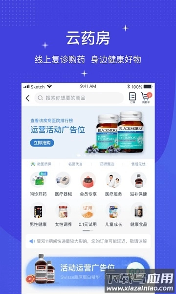 4. 云药房服务:由专业医生团队提供全天候支持,涵盖数千种非处方药与处方药;支持一键下单并配送到家,此外还精心挑选了健康食品、家用医疗设备、保健日用品以及体检保险等各类健康相关产品。