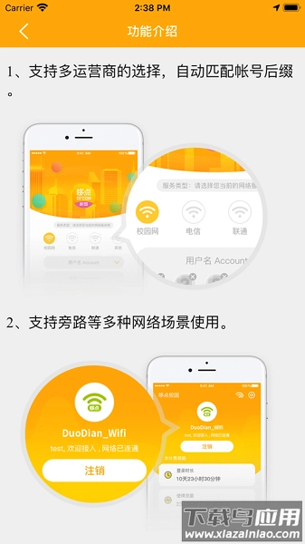 这款应用由Dr.COM城市热点开发,是一款支持多终端多平台的上网客户端;它适配多种Dr.COM组网模式,能够自动识别校园网络环境,为用户提供安全且稳定的连接服务;目前版本的核心功能是网络连接,其他更多服务需要通过哆点来获取。