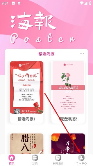 1、在海报设计平台的首页,点击底部的“个人中心”选项,就能进入个人中心页面,查看与账号相关的各项功能。