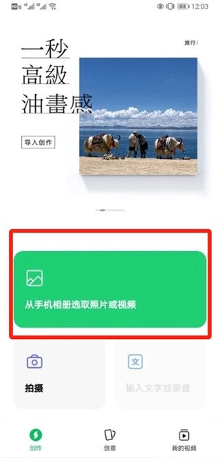 1、首先打开秒剪主页,点击从相册里选择需要编辑的视频并导入。