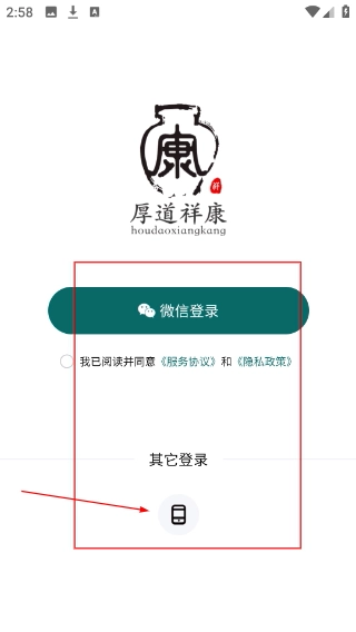 2、进入登录页面后,既可以选择【微信登录】,也可以点击【其它登录】来切换登录方式,不过在此之前需要先勾选同意【服务协议】和【隐私政策】。