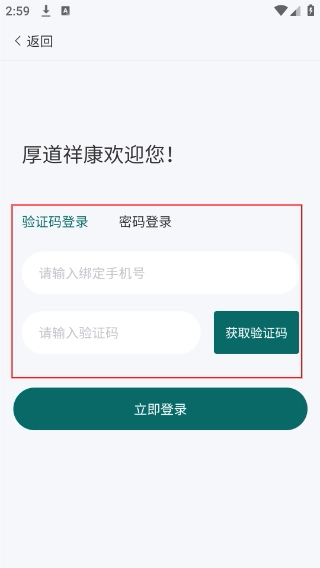 3、进入验证码登录页面,在【请输入绑定手机号】栏填写对应的手机号,点击【获取验证码】按钮,待收到验证码后填入【请输入验证码】栏,最后点击【立即登录】按钮,即可完成登录操作。