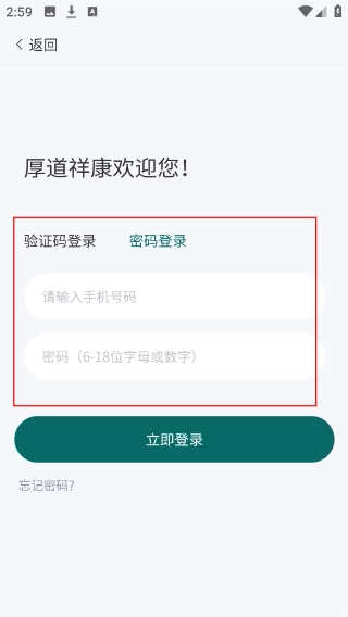 4、进入密码登录界面后,在【请输入手机号码】栏填写对应号码,并设置符合【6-18位字母或数字组合】要求的密码,完成后点击【立即登录】按钮;若忘记密码,可通过找回密码功能进行重置。