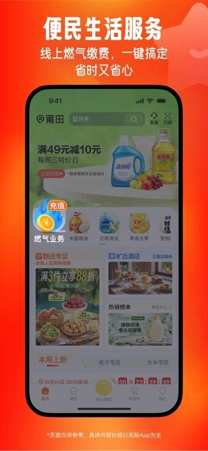 涵盖燃气充值、美食团购、亲子出行、生活超市等。