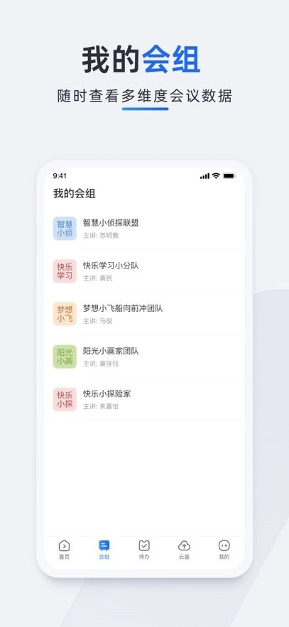 提供无限云盘、屏幕共享及丰富的会议小工具。
