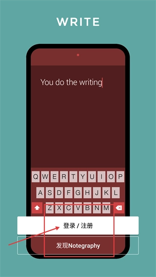 1、打开【Notegraphy】的启动页面后,点击【登录/注册】按钮可进入账号相关操作流程,也可以选择【发现Notegraphy】选项来浏览平台上的各类内容。