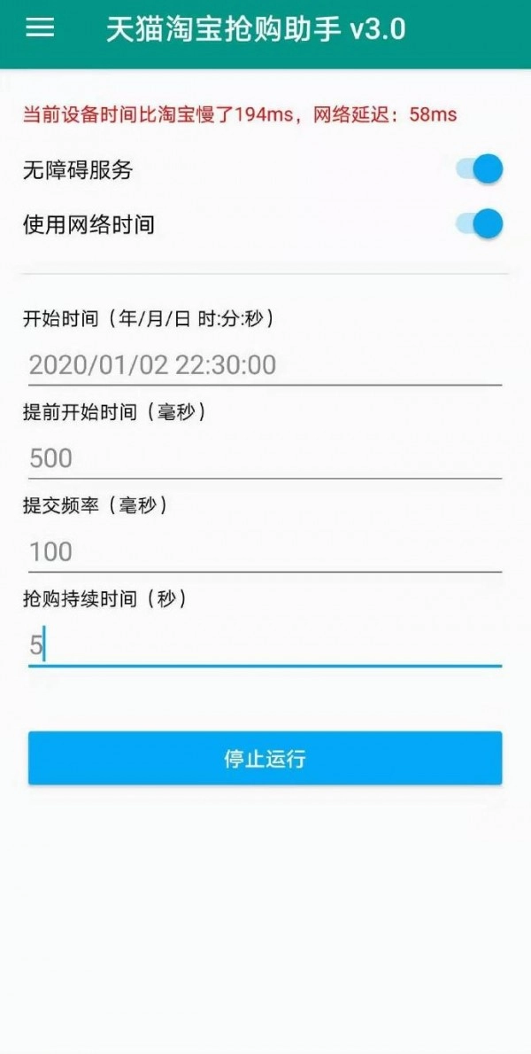 在软件上会显示与淘宝网相比的信息延迟多少毫秒,并且网络延时脚本会开始自动启动。