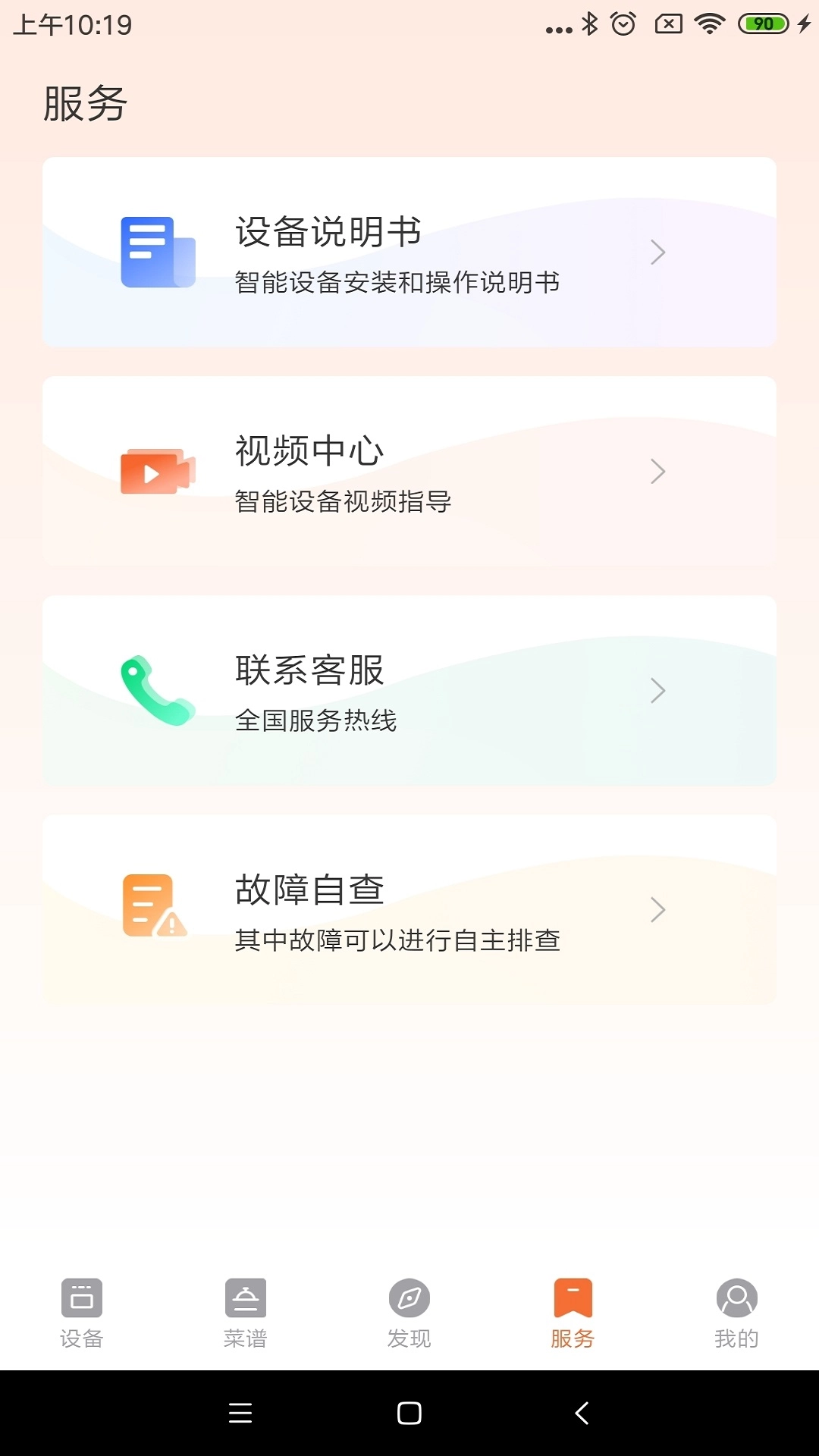 4、 服务中心:帮助用户快速解决设备使用问题;