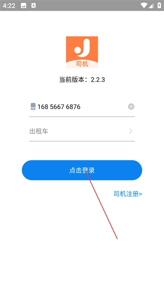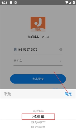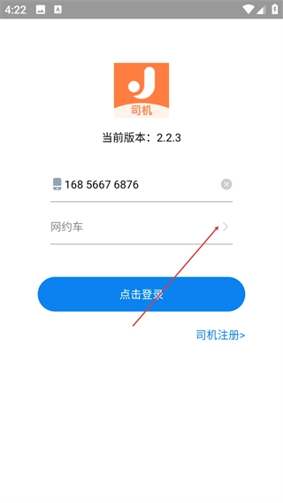 在【当前版本-2.2.3】的登录页面,先确认页面上显示的手机号无误,接着点击【网约车】选项,即可完成服务类型的切换。