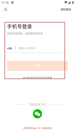 3、登录页面支持切换到【密码登录】模式,在输入手机号和密码后点击【登录】按钮即可完成登录操作;若需切换回免密码登录方式,可通过页面右上角的相关选项进行切换。