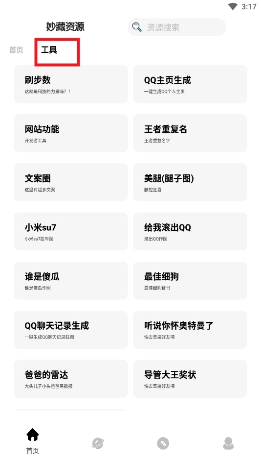 4、在工具界面中,你可以找到刷步数、QQ主页生成、王者重复名、网站功能等各类特殊工具。