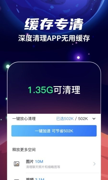 火箭清理最新版是一款实用的安卓优化工具,它具备一键清理、智能管理功能,且安全可靠,为用户提供全方位的手机维护服务。不管是日常清理还是深度优化,火箭清理都能轻松完成,让用户的手机时刻保持最佳状态。此外,这款软件界面简洁美观,操作简单,适合所有安卓用户使用。如果你在找一款高效又好用的手机清理软件,火箭清理最新版无疑是个值得考虑的选择。