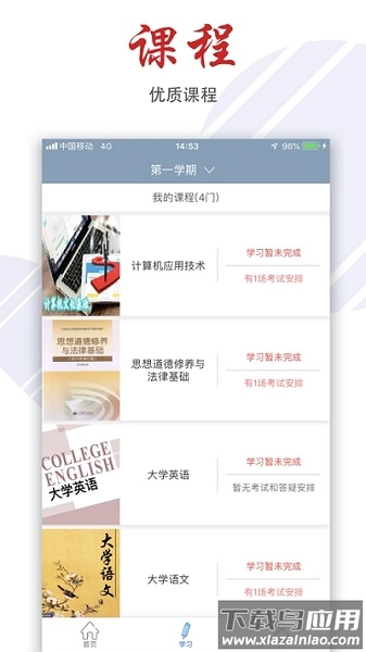 该应用携手多所高校达成课程互通,整合海量教学资源,打破学习的时间与地域限制;你能够灵活运用碎片化时间进行自主学习,随时查看学习进度,了解个人学习情况;平台也提供详尽的学习辅导支持,诚邀有需求的用户前来体验。