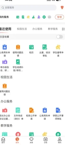 -包含图书馆借阅、宿舍管理、后勤报修、校园卡充值等生活服务功能。