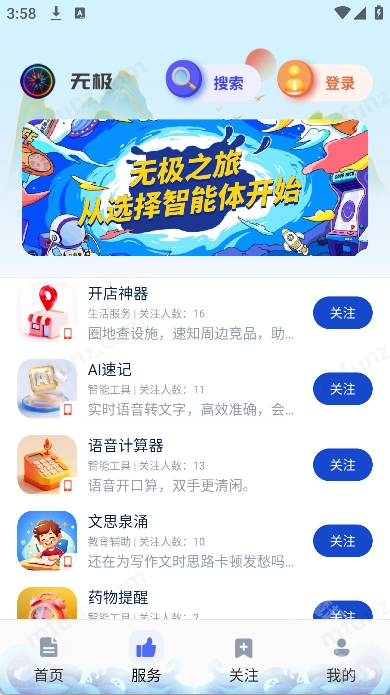 无极AI是一款整合了生活、学习与办公场景的AI工具箱应用。打开无极AI,就能看到丰富多样的AI小工具,比如AI速记、出口成章、药物提醒、语音计算器、作文帮等,找到心仪的工具后点击即可直接使用。此外,无极AI还配备了专属AI小助手,只需输入你需要的功能或遇到的问题,它就能帮你完成相应任务!
