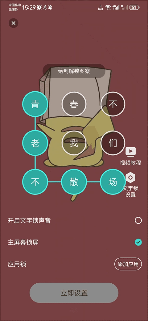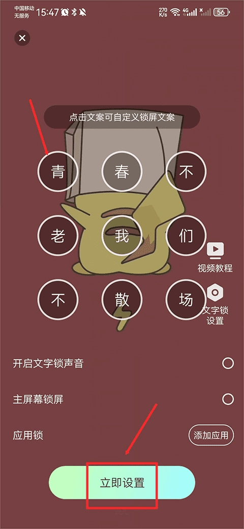 2、在文字锁屏内选择一个喜欢的锁屏壁纸点开