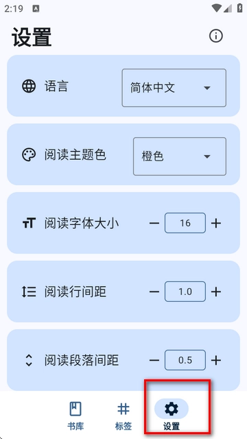 5、点击设置按钮,能够依据个人喜好对相关阅读设置进行调整。
