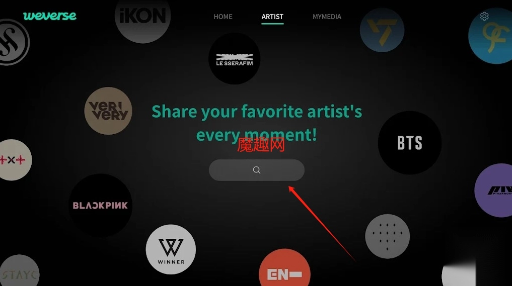1、启动Weverse TV应用程序进入主页面,在搜索栏中直接输入偶像的姓名