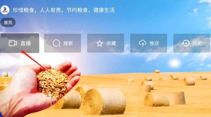 1. 启动饭太香tv电视版应用,点击界面左上角的“直播”选项,即可观看央视、卫视及各地地方频道的电视直播内容