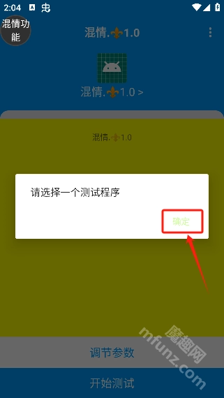 3、点击开始测试,选择应用。