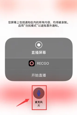 4、点击开启麦克风,当麦克风呈现红色时即为开启状态,随后点击开始直播按钮即可。