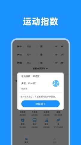 2.界面设计简洁明了,各项功能板块的划分清晰明确,便于用户迅速定位到自己需要的天气信息。