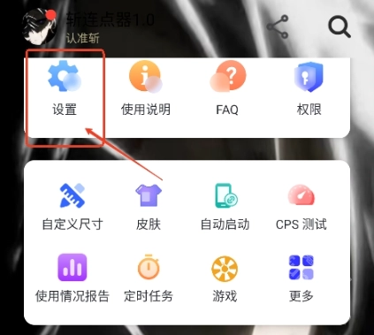 1、进入斩连点器首页点击左上角设置