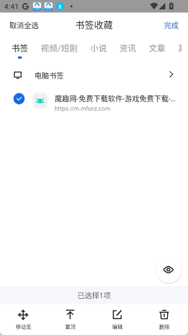 1.首先将网页或视频或短剧等添加到书签收藏