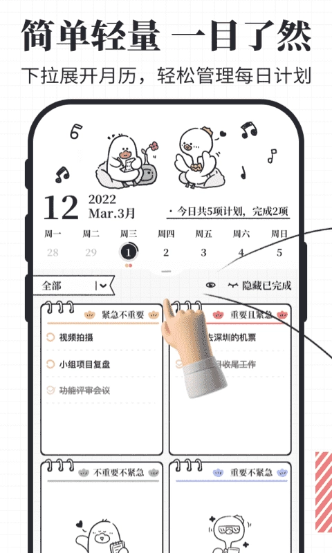 这款四象限时间管理工具完全免费,无需学习就能快速上手,帮你高效规划时间。长按计划条目并拖动,就能轻松完成计划清单的优先级排序。