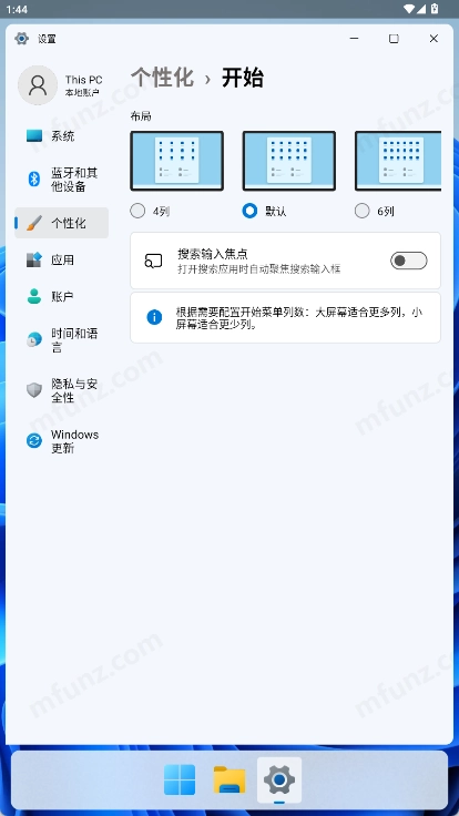 在Windows11手机桌面安卓版里,你可以在设置中自定义调整蓝牙、时间、语言设置,还能对显示效果进行个性化修改。进入主页后,手机上安装的所有应用和游戏都会清晰呈现,整体界面设计得十分简洁清爽。更有意思的是,它甚至模拟了Windows系统特有的开关机流程,就连细节之处都处理得相当细致,体验感拉满!