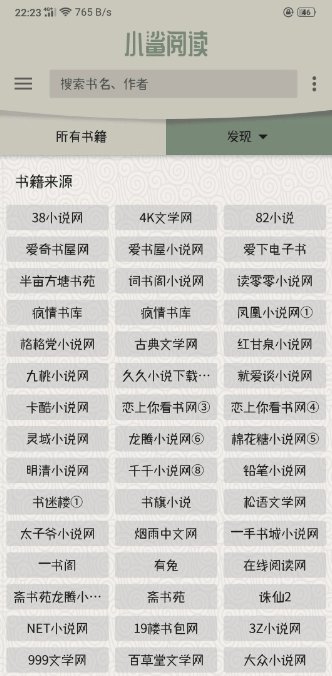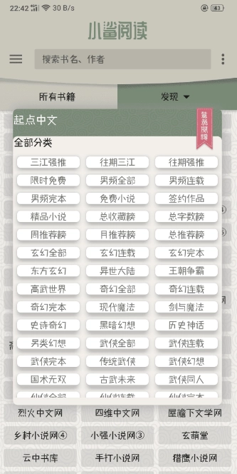 5、再次返回发现页面,就能看到刚才导入的书源了,其中包含了各类小说书单。