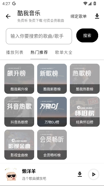 2、这里以进入酷我音乐为例,能看到其中包含了不少榜单内容。