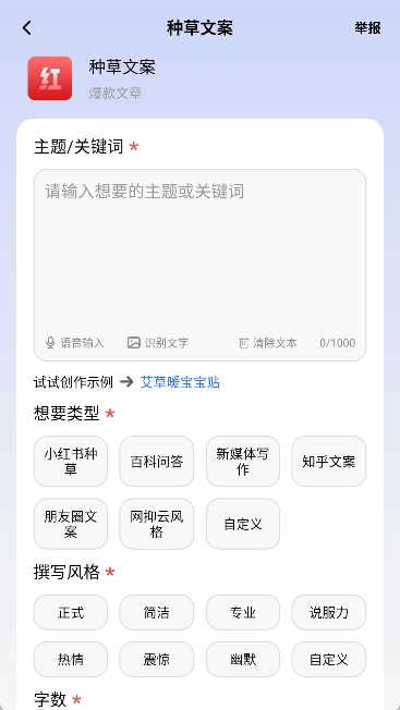 - AI文案创作:具备智能AI生成文案的能力,覆盖多样文案类型。