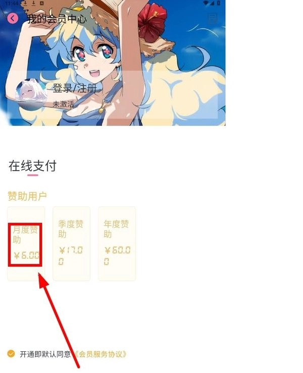 选择充值金额,点击立即开通