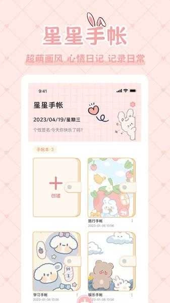 星星手账是一款超可爱的电子手账应用,里面有海量丰富素材,还有各种萌趣贴纸和多样模板,能让用户轻松制作专属手帐,而且支持密码设置来提升安全性,感兴趣的小伙伴快来体验吧!