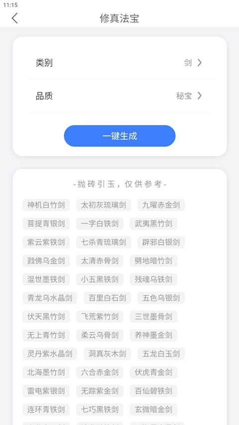 只要选定类别与品质,就能生成大量可供参考的名字。
