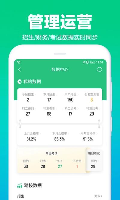 一键助力驾校教练记录与管理学员信息;通过记录学员学习成绩、安排学员考试,提升服务品质,助力教练收获良好口碑与稳定生源。