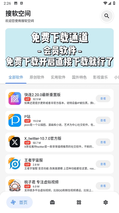 搜软空间是一款相当不错但使用人数较少的软件库!它能为用户提供极为全面的软件资源搜索服务,全程、不收费,无论你喜欢什么类型的软件,基本都能在这里找到!