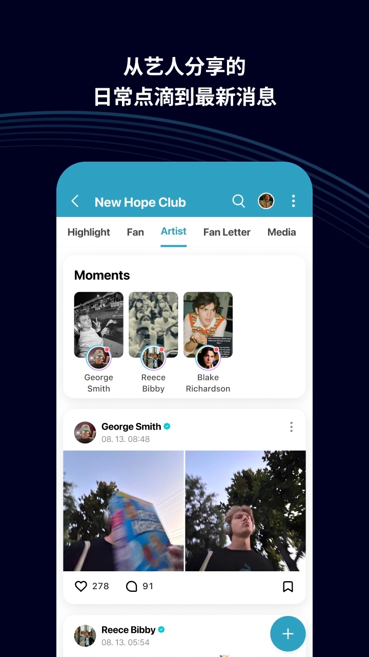 社区互动:粉丝能在社区里自主发布文字、图片、视频等各类内容,和其他粉丝进行互动交流,分享对明星的喜爱与支持,也可以参加话题讨论、投票等活动,以此加强粉丝之间的联系,提升群体的凝聚力。