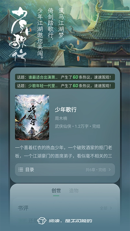 不可能的世界最新版是一款专为网文创作者和读者打造的小说阅读软件,在这里你可以接触到更多类型的小说,而且所有内容全程正版,支持在线阅读,感兴趣的小伙伴欢迎前来体验!