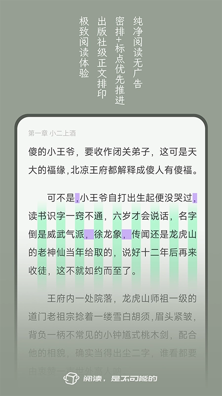 支持多样配置,小说排版精致,字体大小、字间距、阅读背景均可自由切换