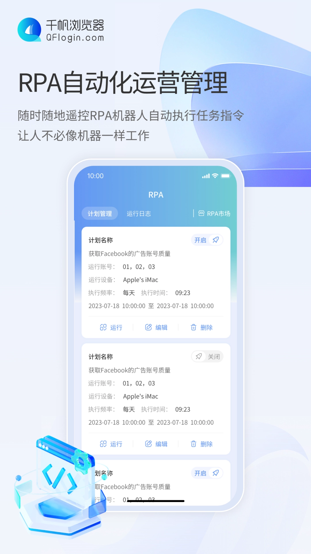 2、在任务管理领域,我们始终走在RPA技术的前沿。仅需一台设备,您便可不受时空限制地下达RPA任务指令,同时能直观掌握运行日志,保障您的业务始终保持高效运转状态。