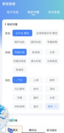 2、可以购买众多地区的平台代理套餐。